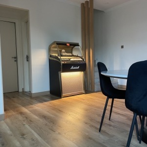 It is always a pleasure to see one of our jukeboxes settle into its new home, and this installation is no exception. The Sound Leisure Marshall 45 jukebox now takes pride of place in a beautifully modern interior, sitting comfortably within contemporary surroundings while still delivering unmistakable jukebox presence.